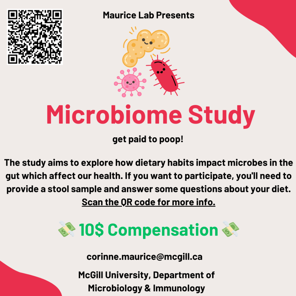 You are on or near the McGill campus this summer? You can contribute to science in unusual ways! We are looking for volunteers to understand the Human gut microbiome!