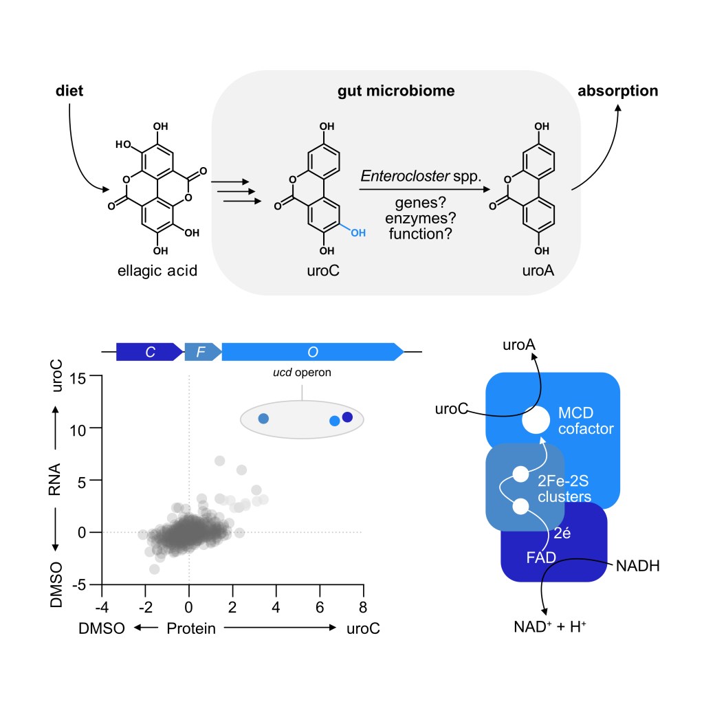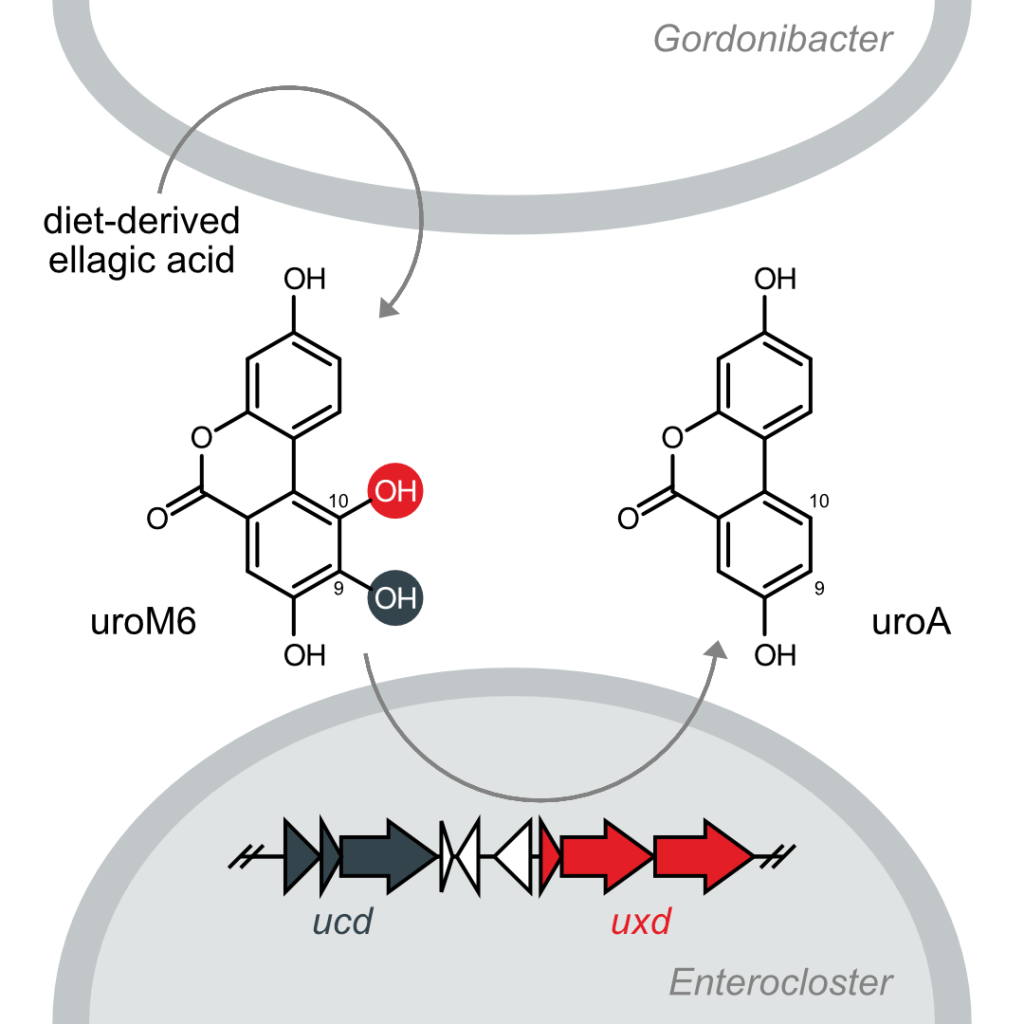 Diet-derived urolithin A is produced by a dehydroxylase encoded by human gut Enterocloster species.